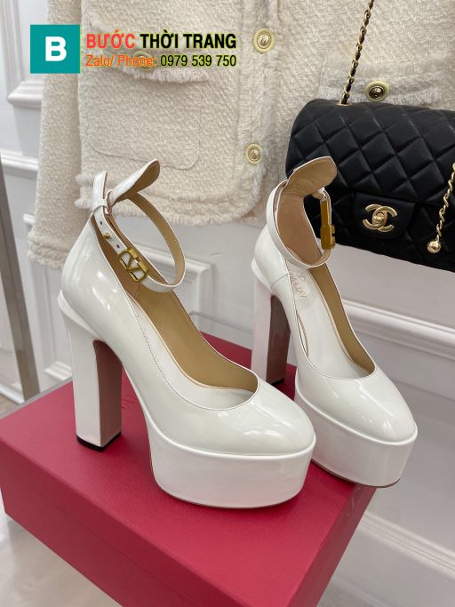 Giày cao gót Valentino siêu cấp màu trắng cao 15,5cm mũi bo tròn, from chuẩn đẹp