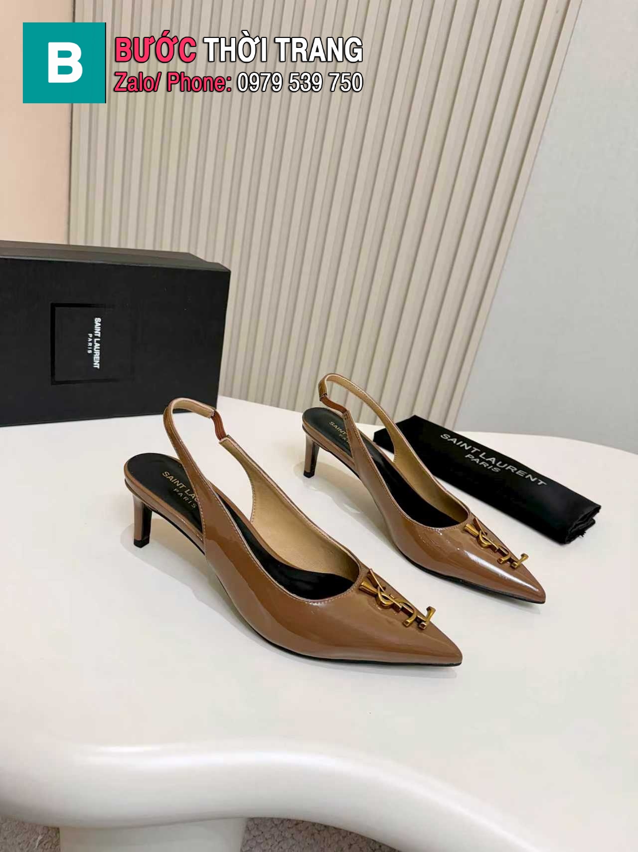 Giày cao gót YSL siêu cấp màu nâu da bóng mềm mũi nhọn nữ tính