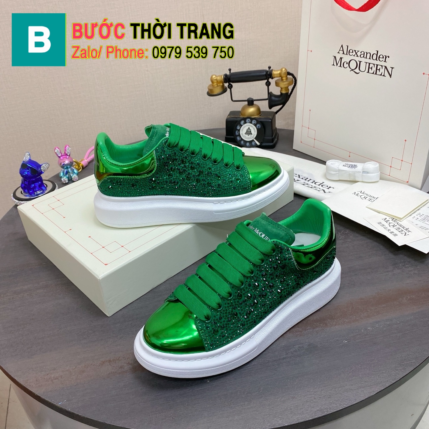 Giày đính hạt Alexander McQueen màu xanh đế cao 4.5cm chất da đẹp