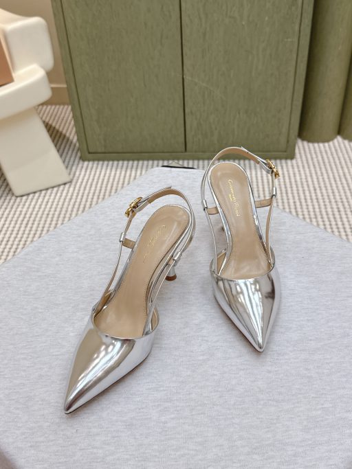 Giày Gianvito rossi cao gót màu bạc siêu cấp da bóng mũi nhọn nữ tính