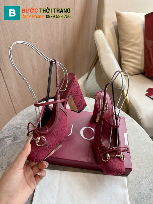 Giày Gucci cao gót màu đỏ đô da canvas, giày mũi nhún rất xinh