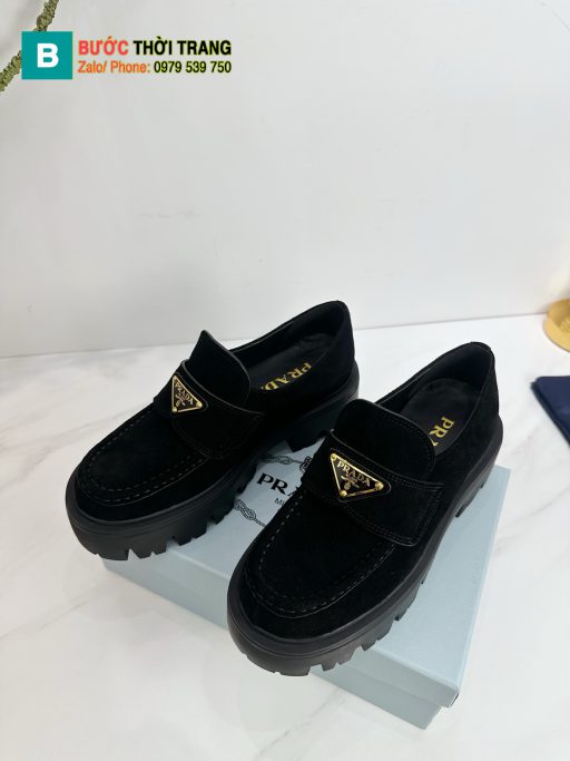 Giày Loafer Prada màu đen siêu cấp chất liệu da lộn đế cao su bền bỉ