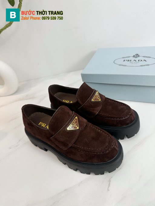 Giày Loafer Prada màu nâu trầm siêu cấp chất liệu da lộn đế cao su bền bỉ