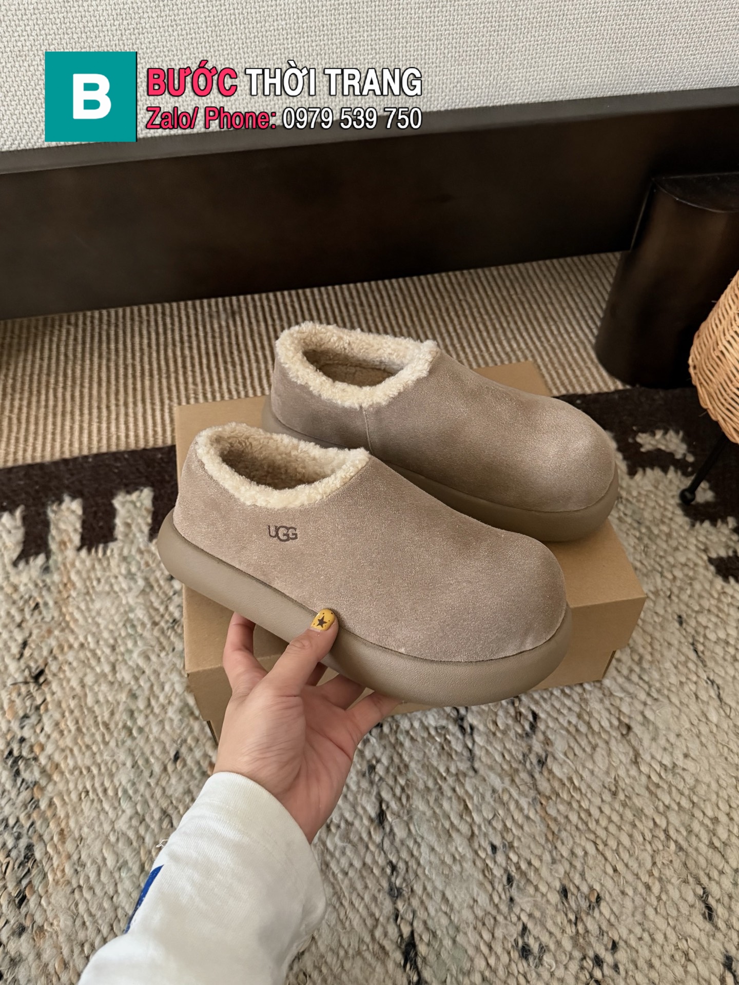 Giày lông cừu UGG màu ghi mềm mại thiết kế hình củ khoai tây đặc sắc