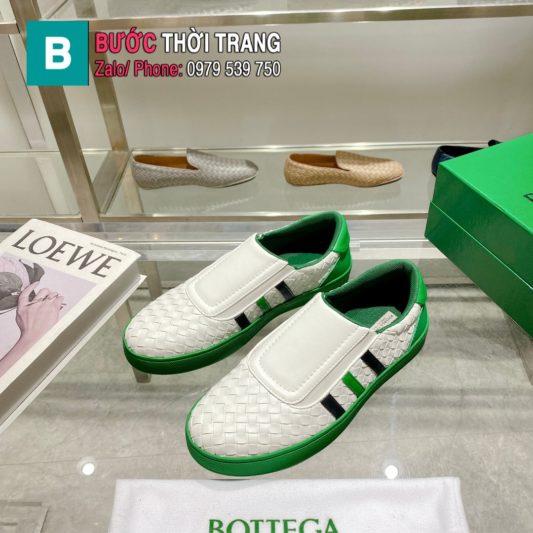 Giày lười Bottega đan thủ công cao cấp màu trắng đế xanh phong cách sang trọng