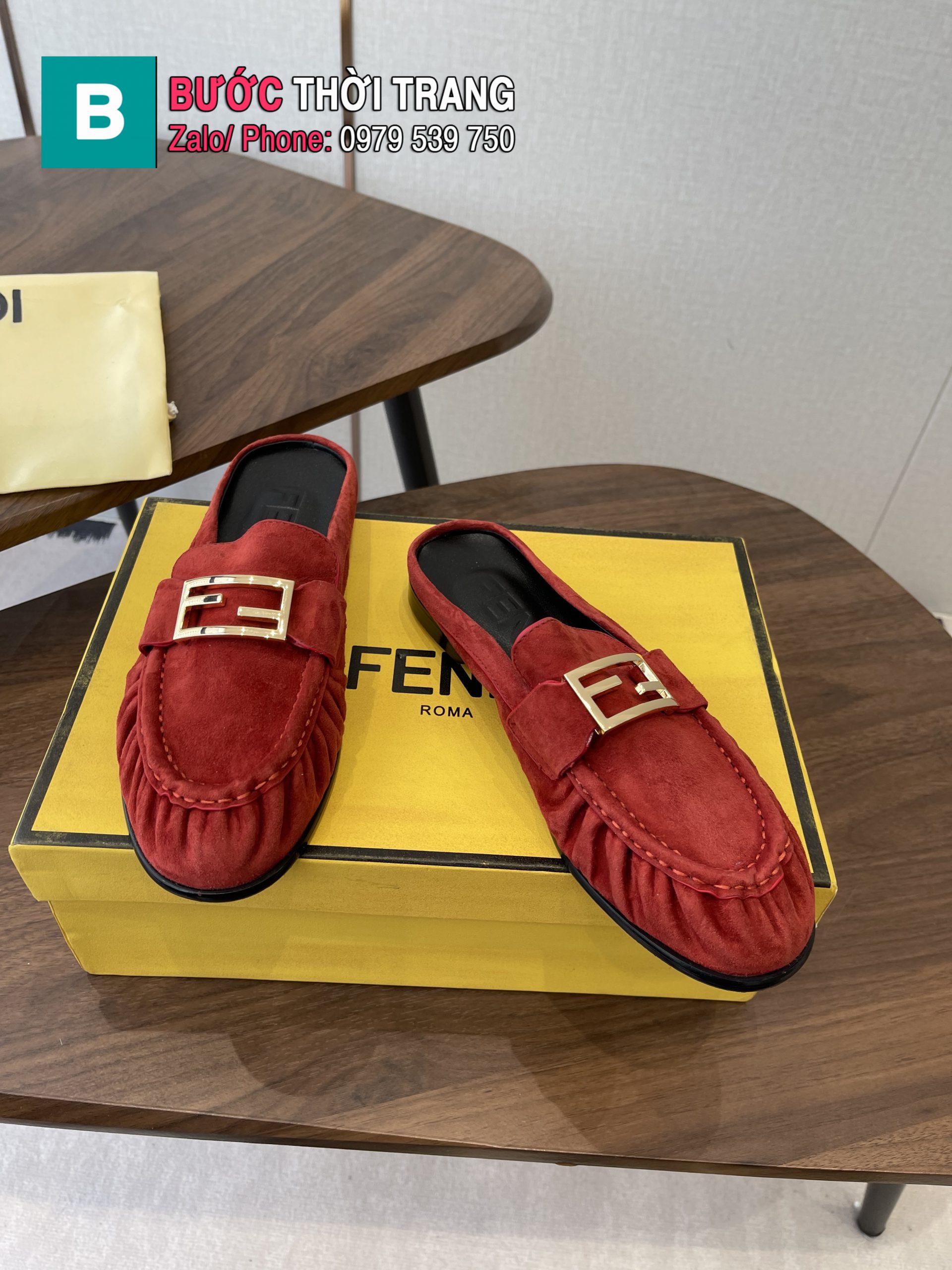 Giày lười FENDI cao cấp màu đỏ chất liệu da bê mềm mịn