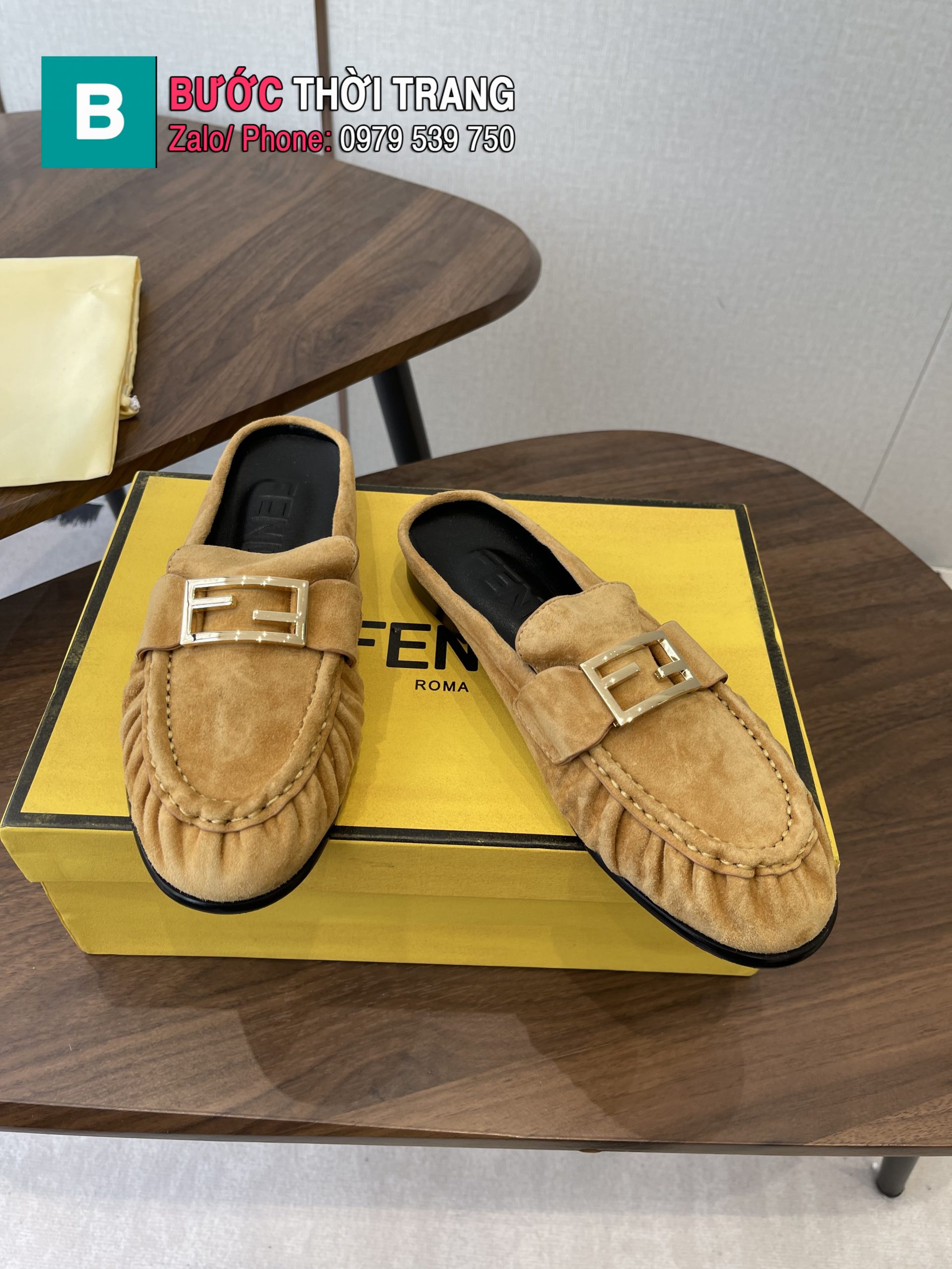 Giày lười FENDI cao cấp màu nâu chất liệu da bê mềm mịn