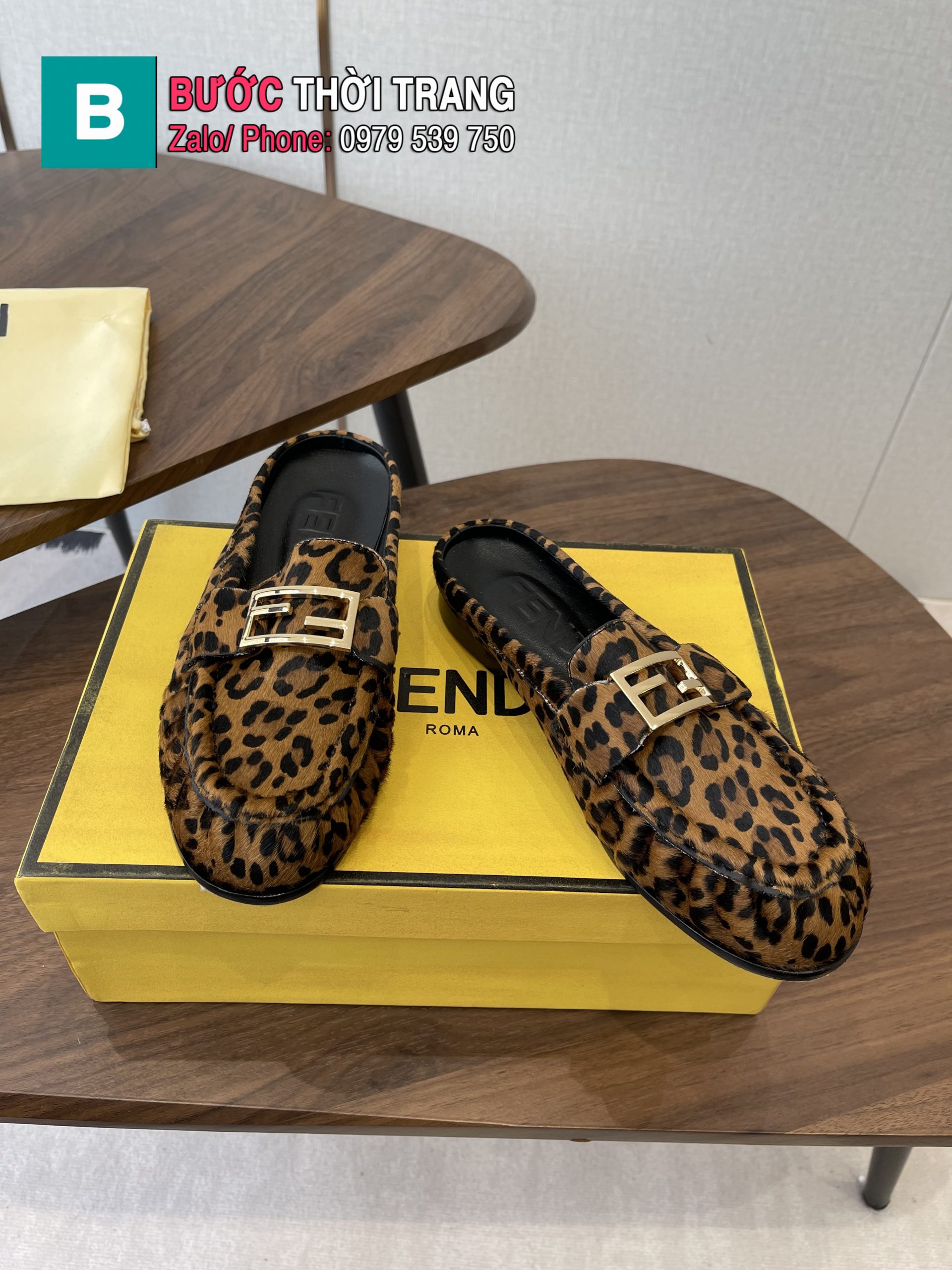 Giày lười FENDI cao cấp màu nâu họa tiết da báo chất liệu da bê mềm mịn