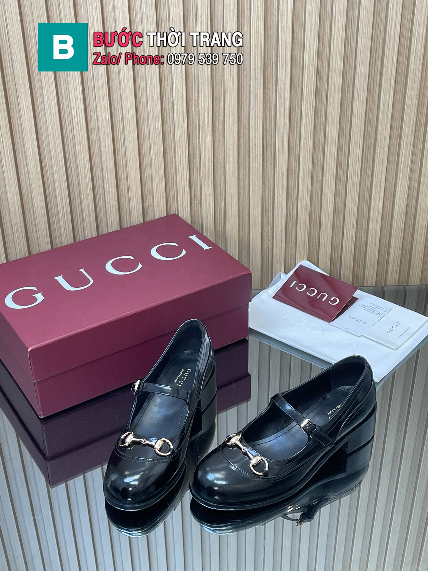 Giày lười GUCCI cao cấp màu đen quai ngang nữ tính