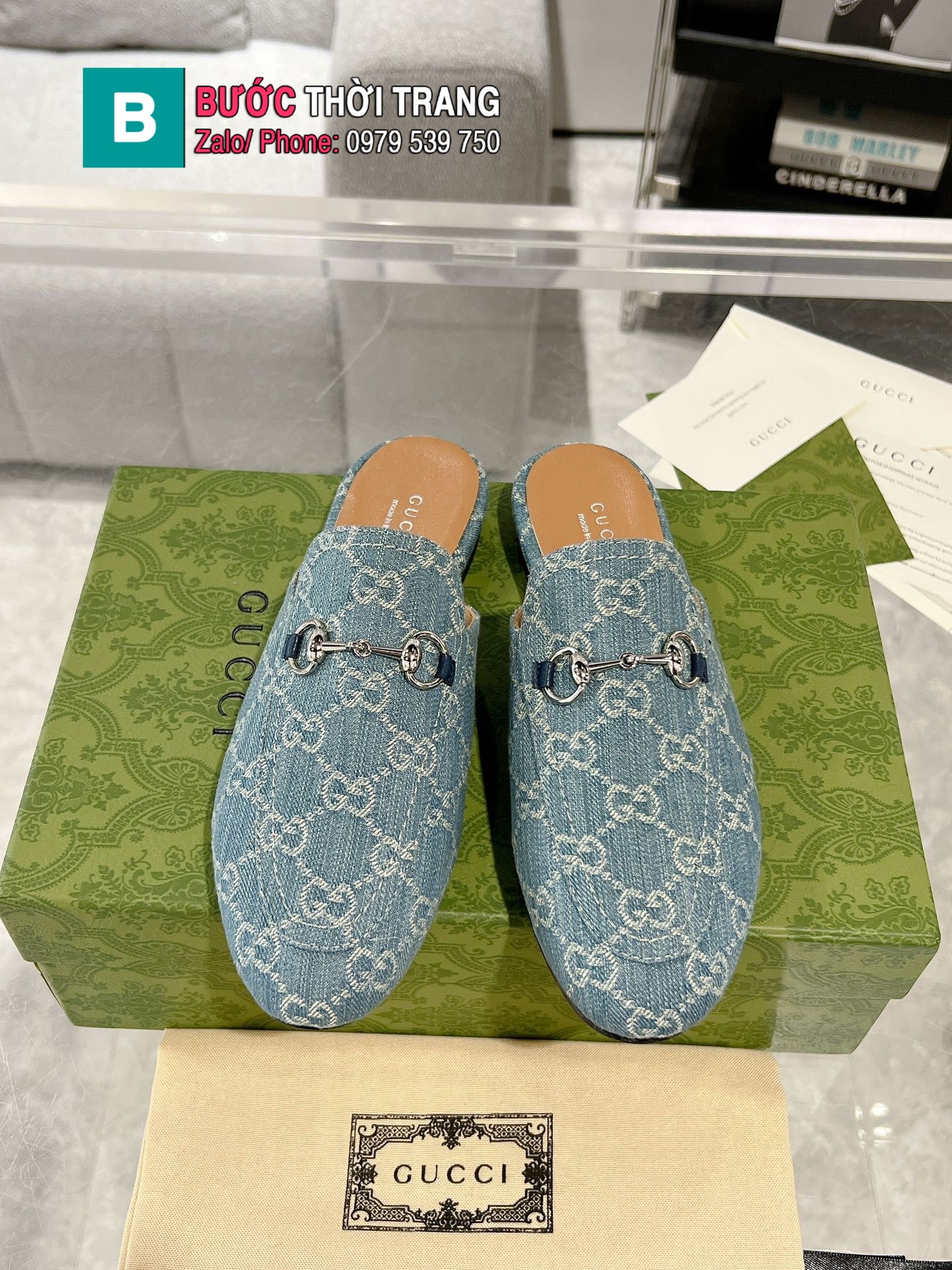 Giày lười GUCCI cao cấp màu xanh vải canvas logo nổi bật