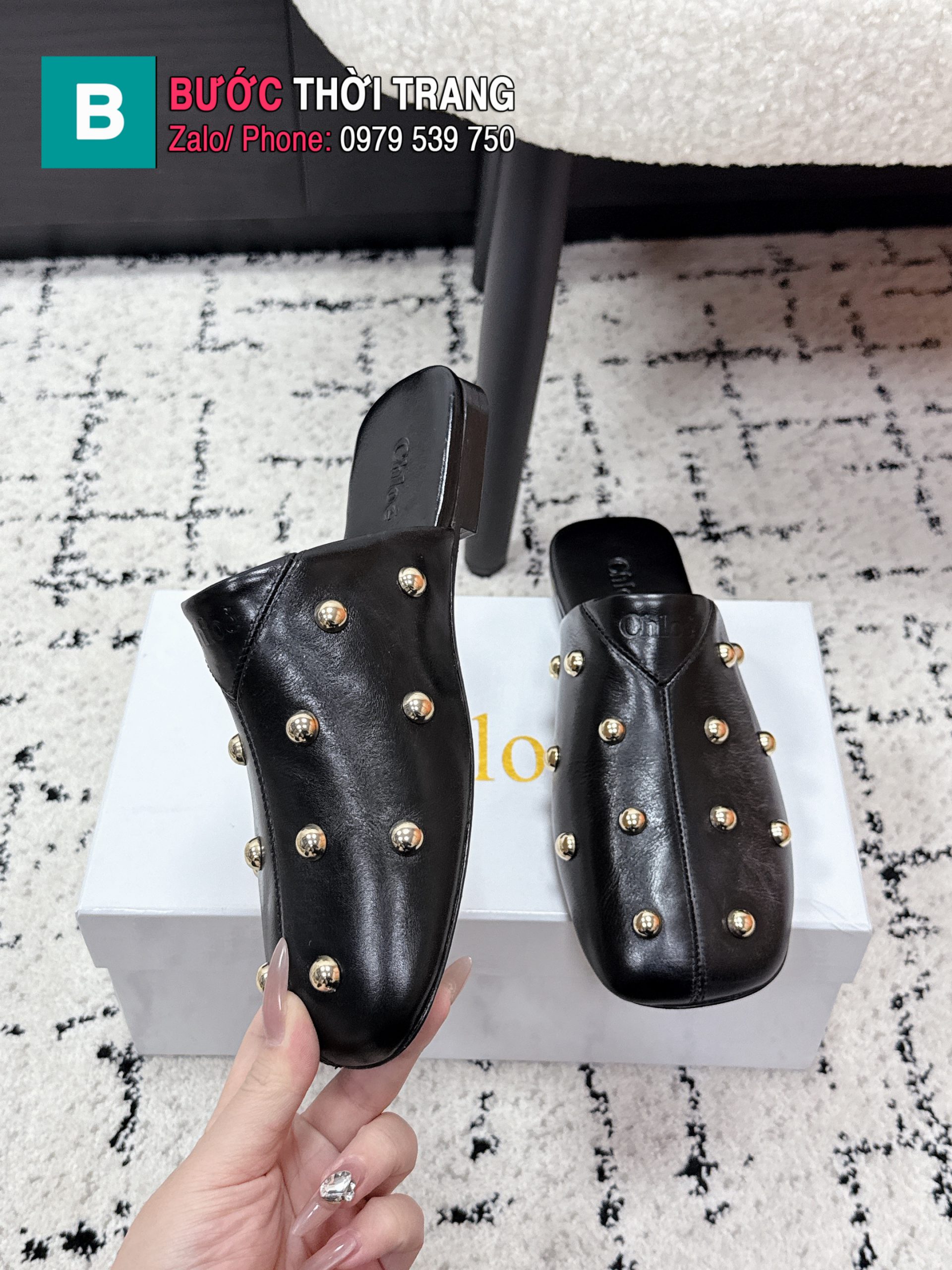 Giày lười nữ CHLOE màu đen da mềm đính hạt kim loại vàng sáng