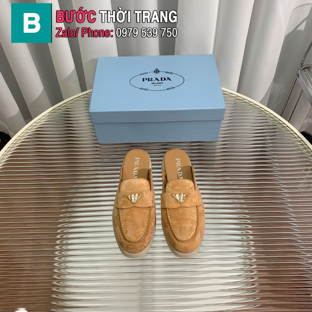 Giày lười PRADA màu nâu da cừu mềm êm cao cấp đế cao su đàn hồi bền bỉ