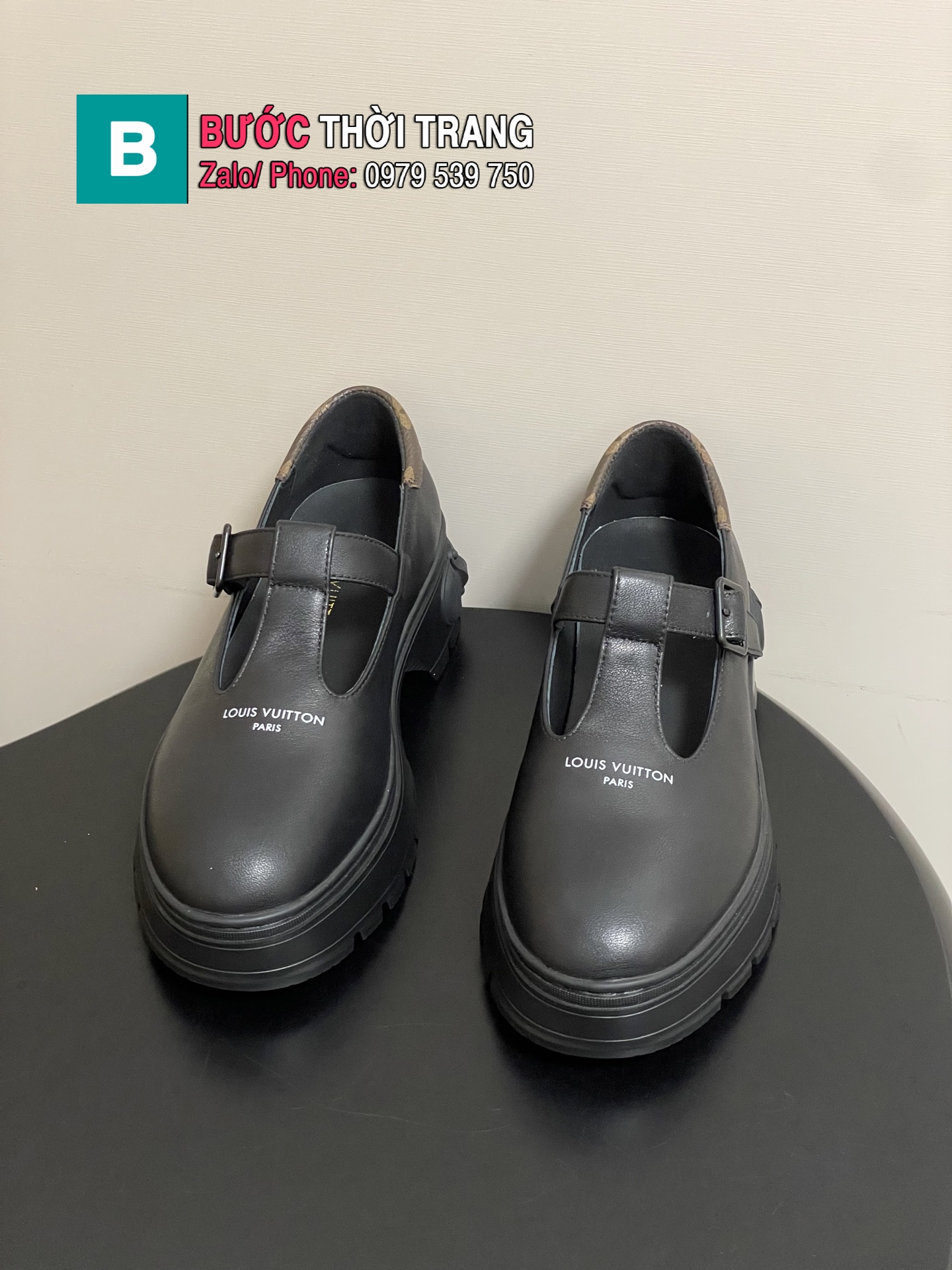 Giày LV Squad Mary Jane màu đen mũi tròn đế cao 5cm tôn dáng được chế tác từ da bò mịn