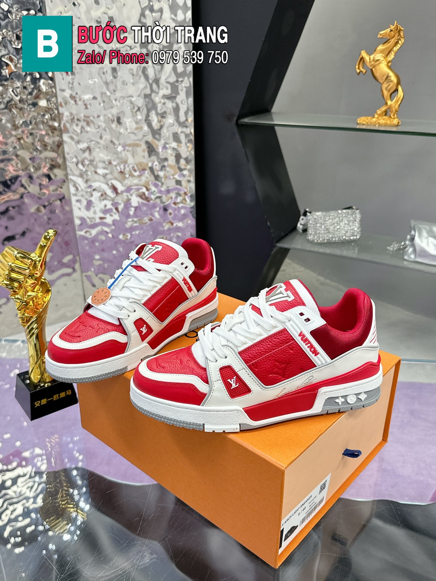 Giày LV Trainer hàng siêu cấp màu đỏ chất liệu da đẹp