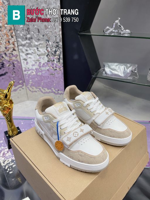 Giày LV Trainer hàng siêu cấp màu nâu nhạt cực đẹp