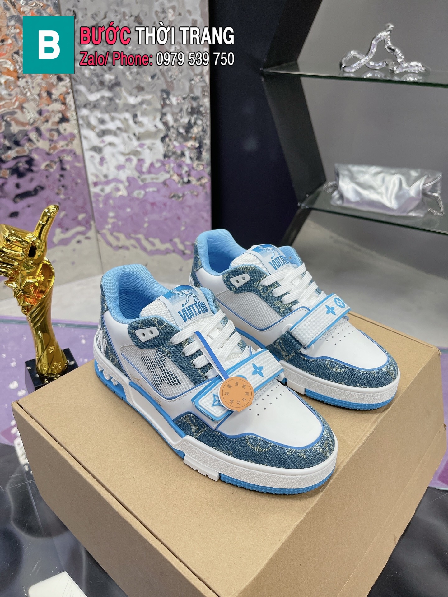 Giày LV Trainer hàng siêu cấp màu xanh nhạt cực đẹp