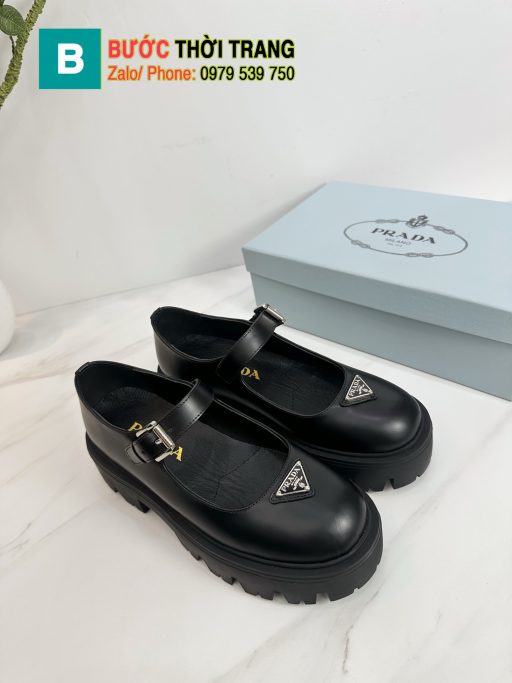 Giày Mary Jane Prada màu đen mũi tròn xinh xắn đính logo nổi bật