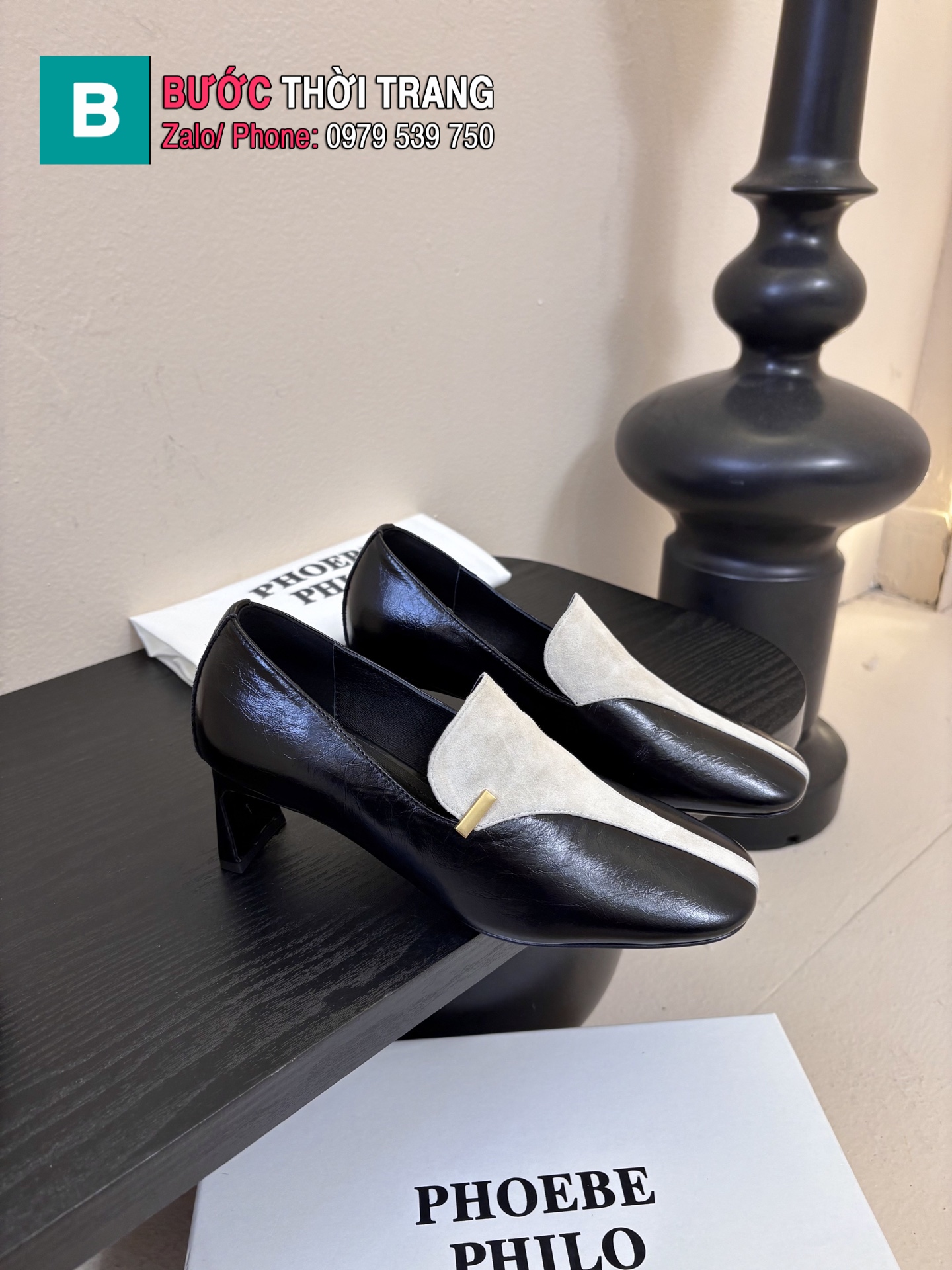 Giày nữ Phoebe philo màu đen thân trắng da sáp dầu cao cấp
