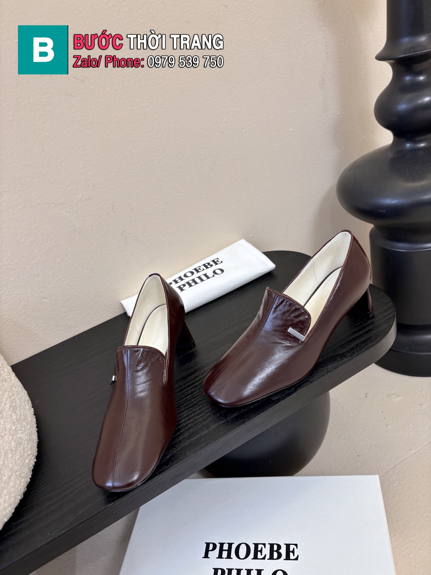 Giày nữ Phoebe philo màu nâu socola gót vuông da sáp dầu cao cấp