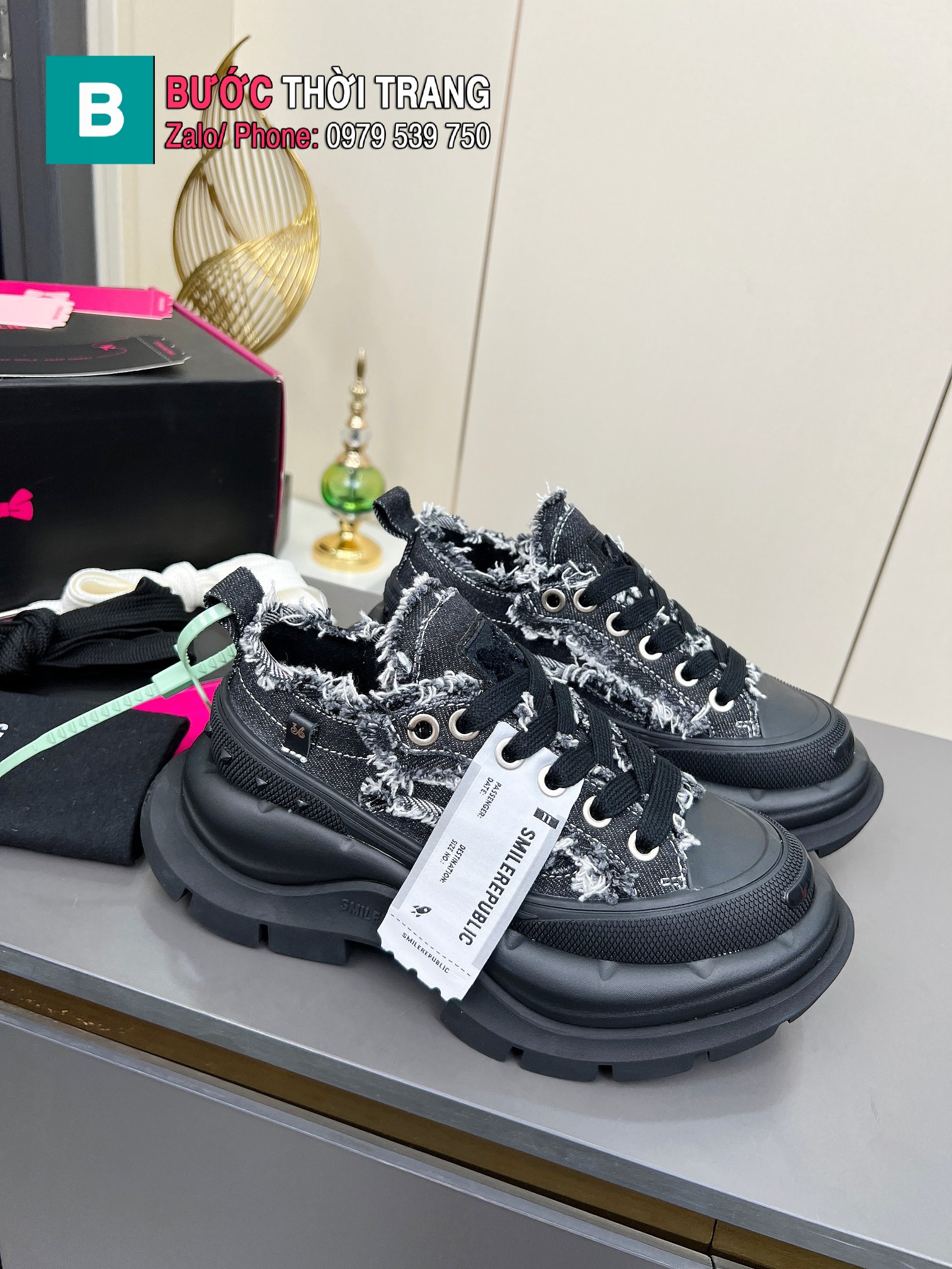 Giày thể thao 𝐒𝐦𝐢𝐥𝐞𝐫𝐞𝐩𝐮𝐛𝐥𝐢𝐜 màu đen đế cao 7cm tôn dáng cực êm chân