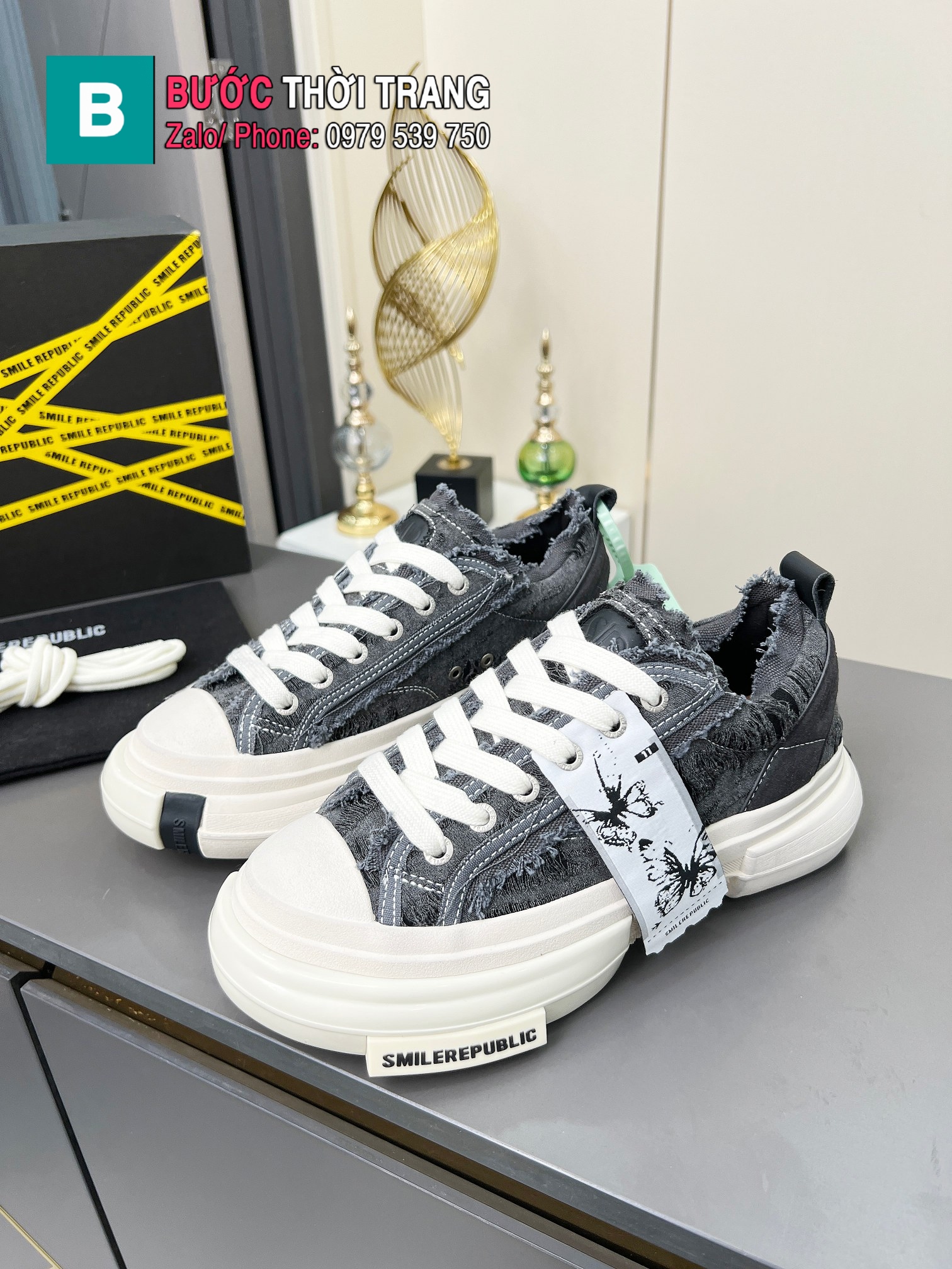 Giày thể thao 𝐒𝐦𝐢𝐥𝐞𝐫𝐞𝐩𝐮𝐛𝐥𝐢𝐜 màu ghi đen đế cao 4cm tôn dáng cực êm chân