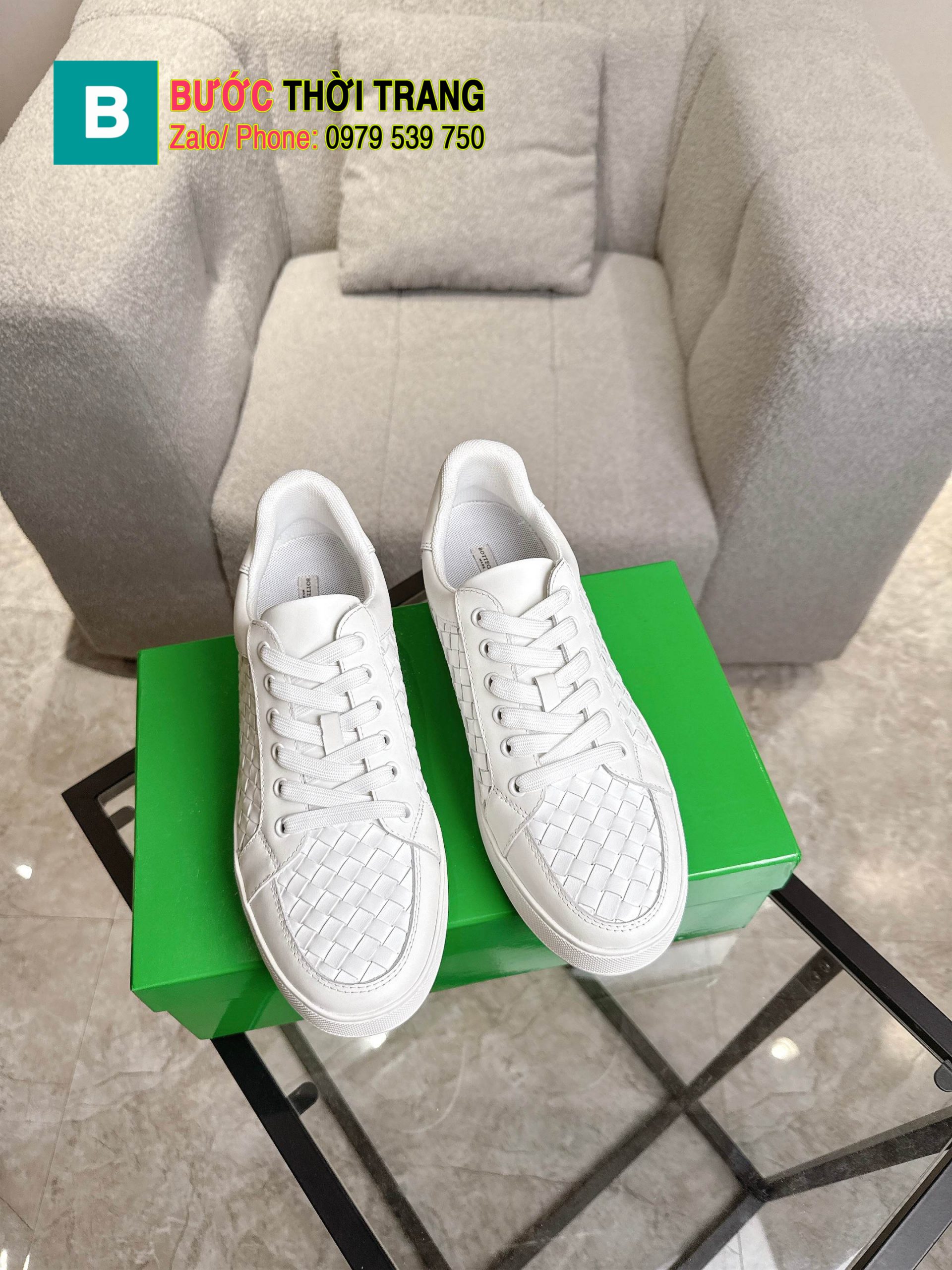 Giày thể thao Bottega Veneta cao cấp màu trắng họa tiết đan da thủ công đặc trưng và phong cách sang trọng