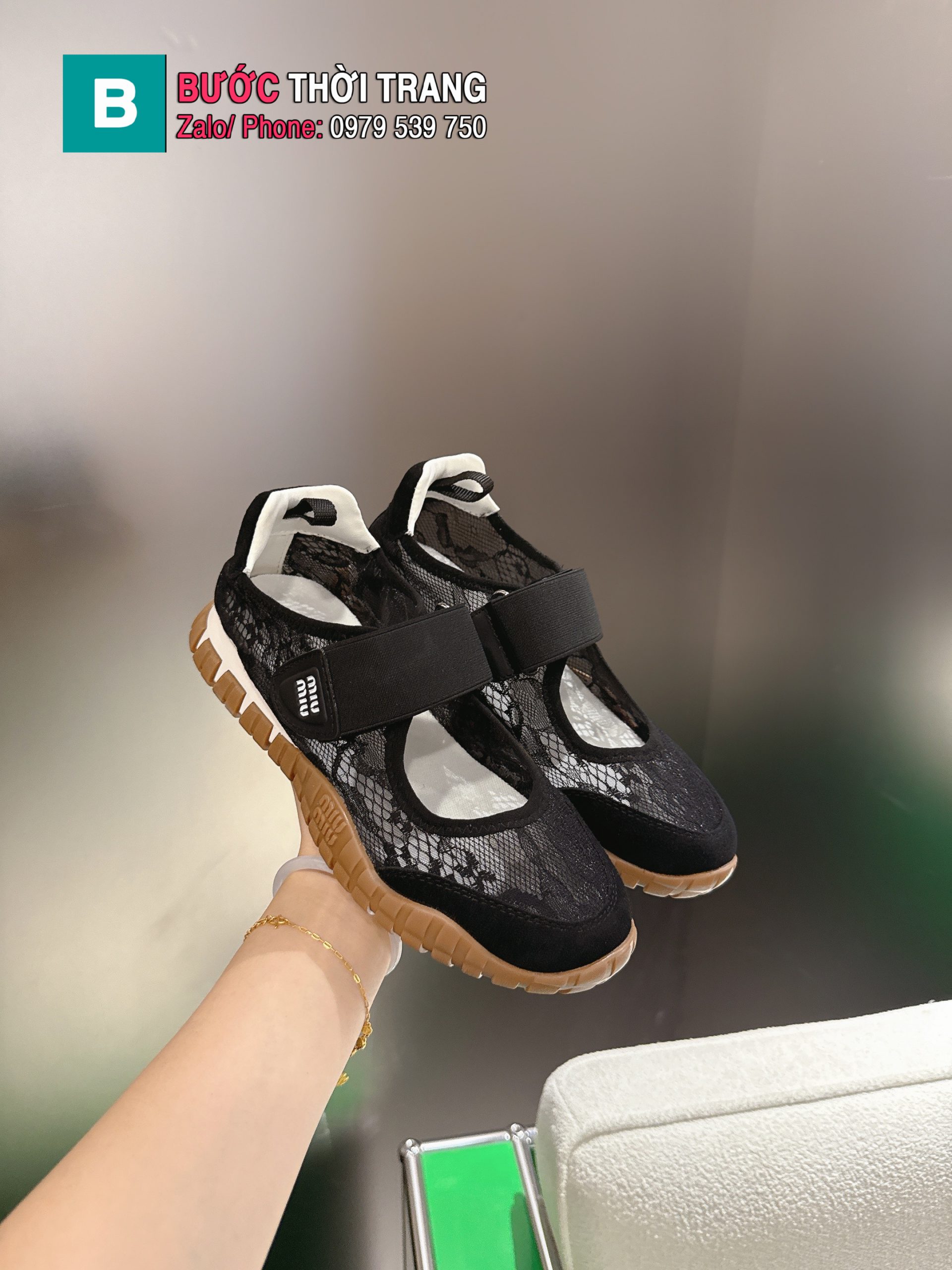 Giày thể thao casua MIU MIU màu đen đế cao su năng động bền bỉ