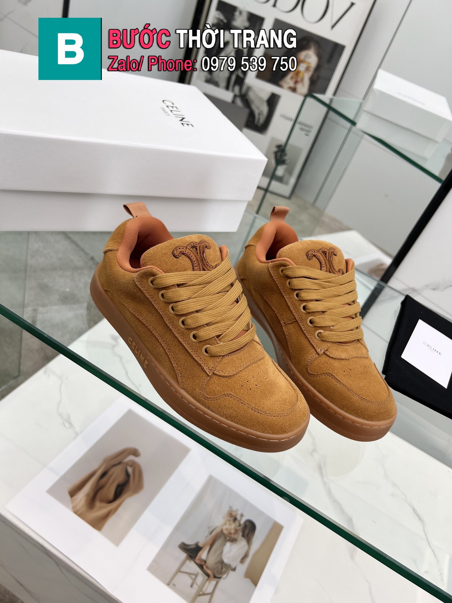 Giày thể thao CELINE đế xuồng màu nâu cao cấp phom tròn đầy độc đáo