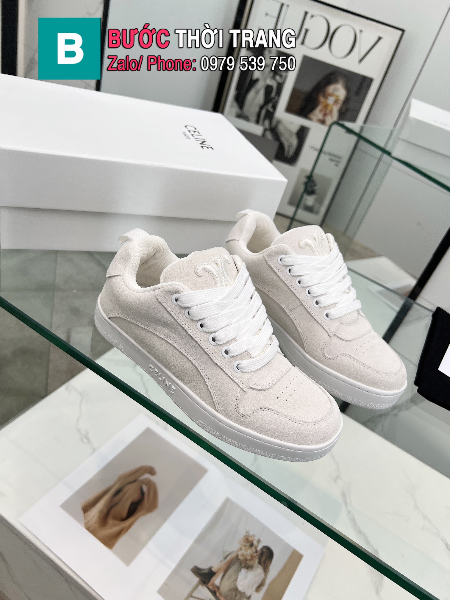 Giày thể thao CELINE đế xuồng màu trắng ngà cao cấp phom tròn đầy độc đáo