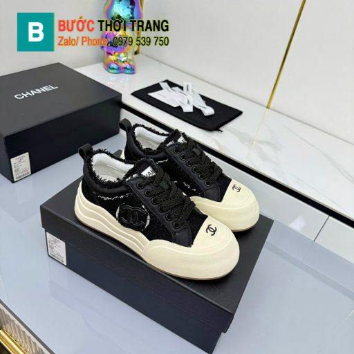 Giày Giày thể thao Chanel màu đen, chất liệu vải denim cá tính giày đế cao logo nổi bật