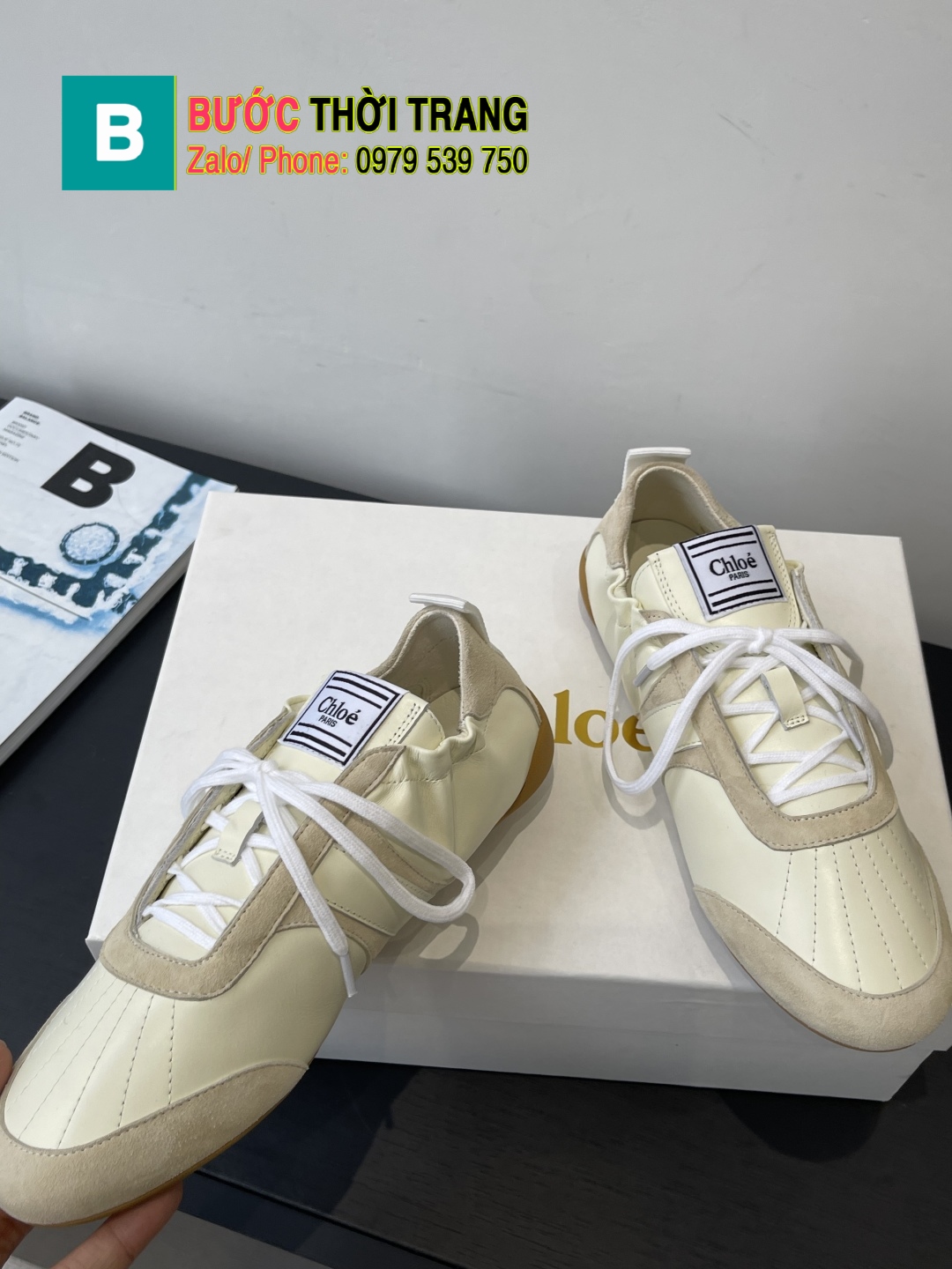 Giày thể thao CHLOE cao cấp màu be chất da bò cao cấp phối vải đế cao su đàn hồi bền bỉ