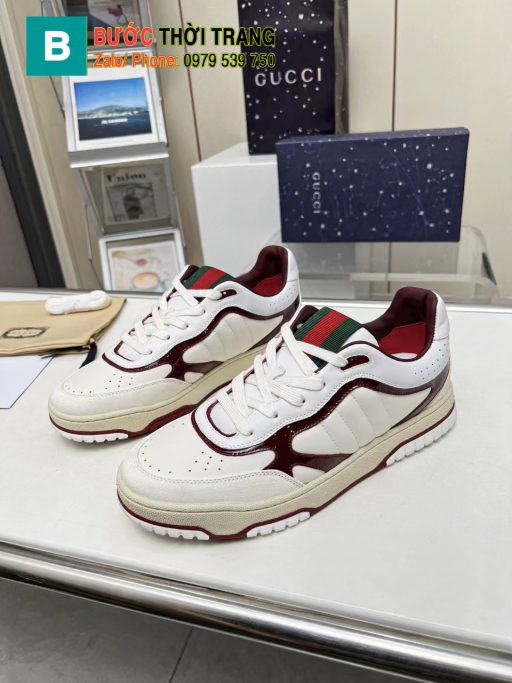 Giày thể thao Gucci cao cấp màu trắng đế đỏ chất liệu da bò đằm tay