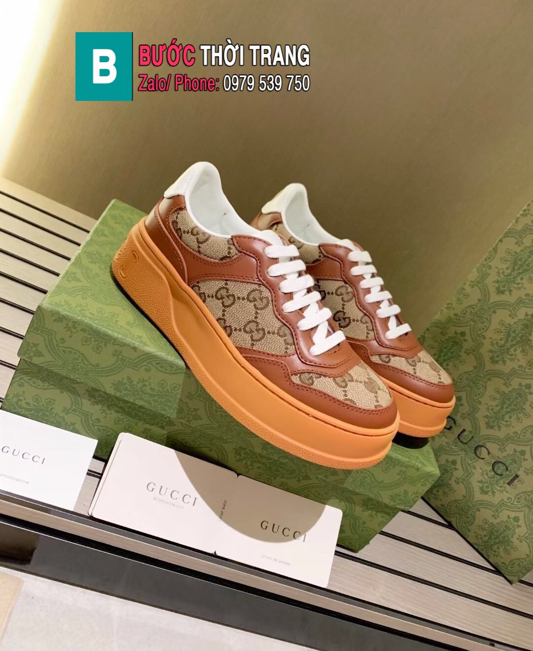 Giày thể thao GUCCI màu nâu canvas cao cấp logo nổi bật đế giày IP siêu nhẹ kiểu dáng tinh tế