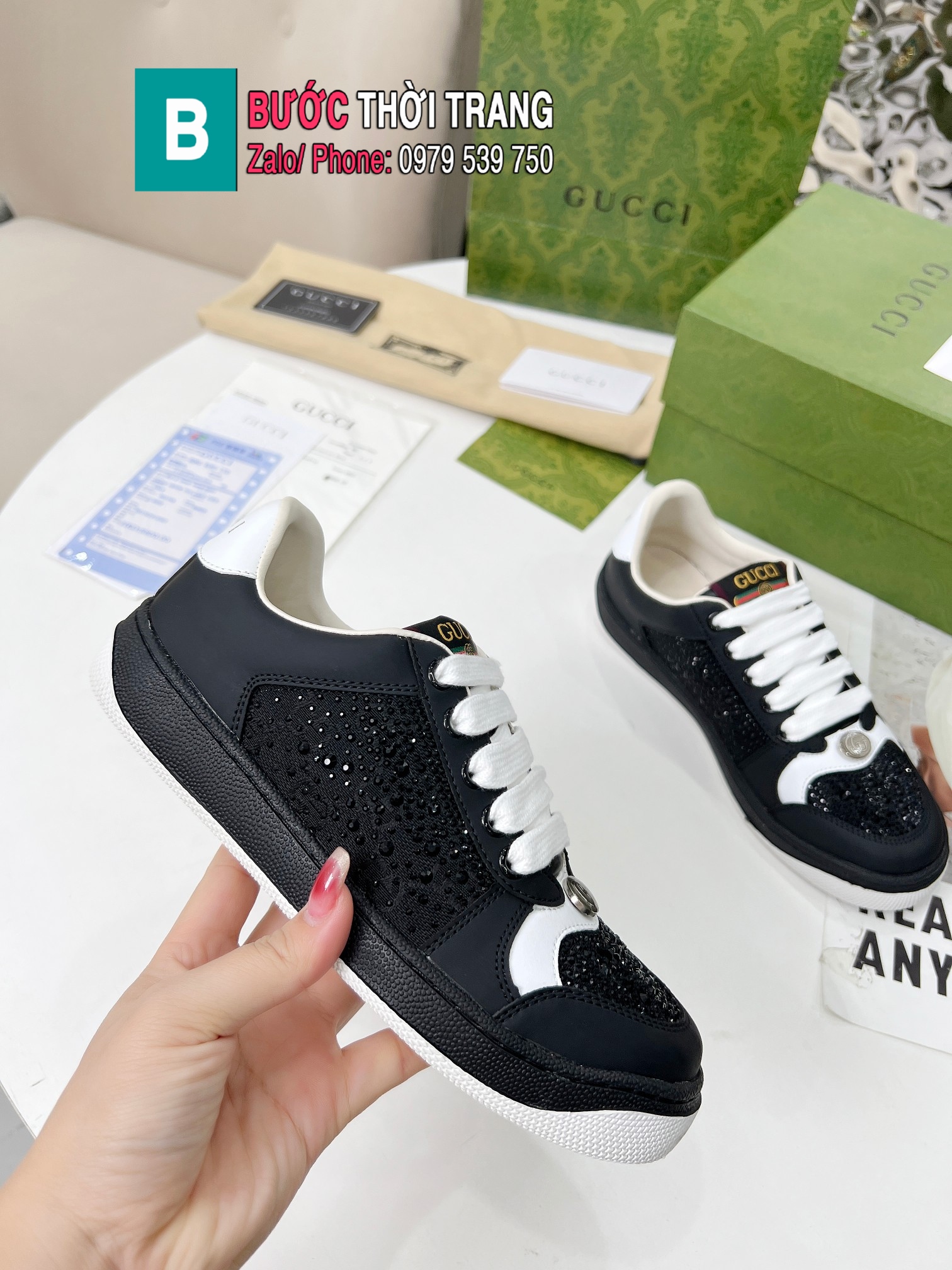 Giày thể thao GUCCI siêu cấp màu đen đế trắng đính pha lê lấp lánh