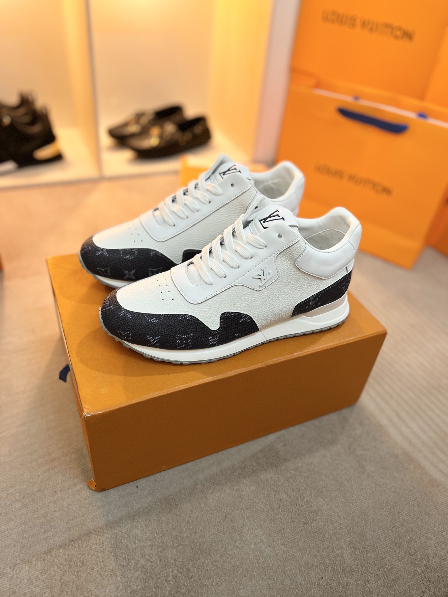 Giày thể thao LV Run Away màu trắng viền ghi họa tiết monogram sắc nét