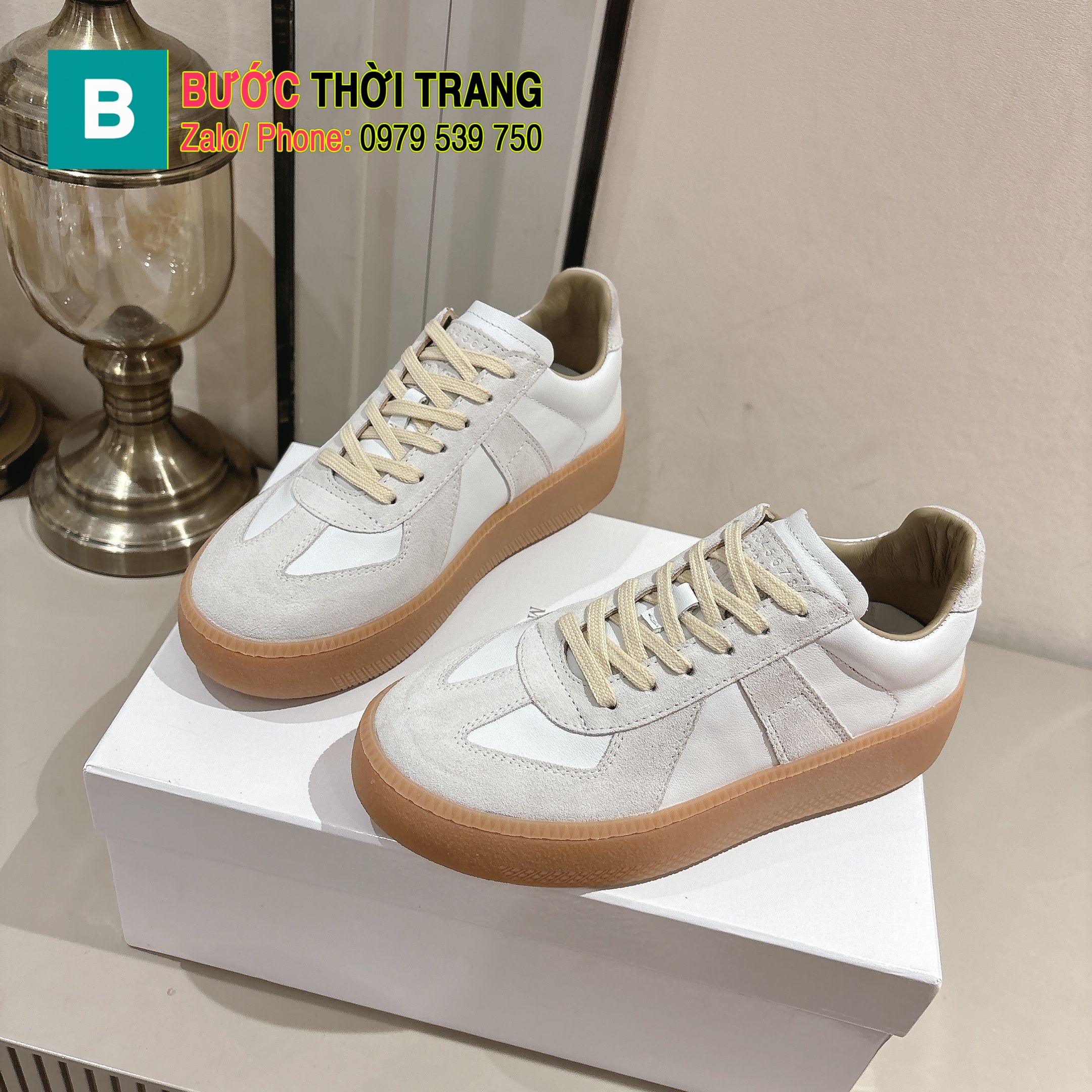 Giày thể thao Maison Margiela màu be cao cấp đế cao su đàn hồi vượt trội bền bỉ