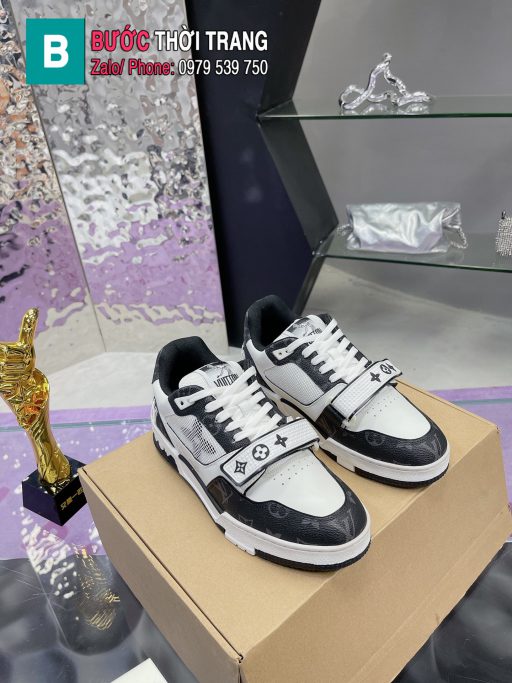 Giày Thể Thao nam nữ LV Trainer hàng siêu cấp màu đen vải bò