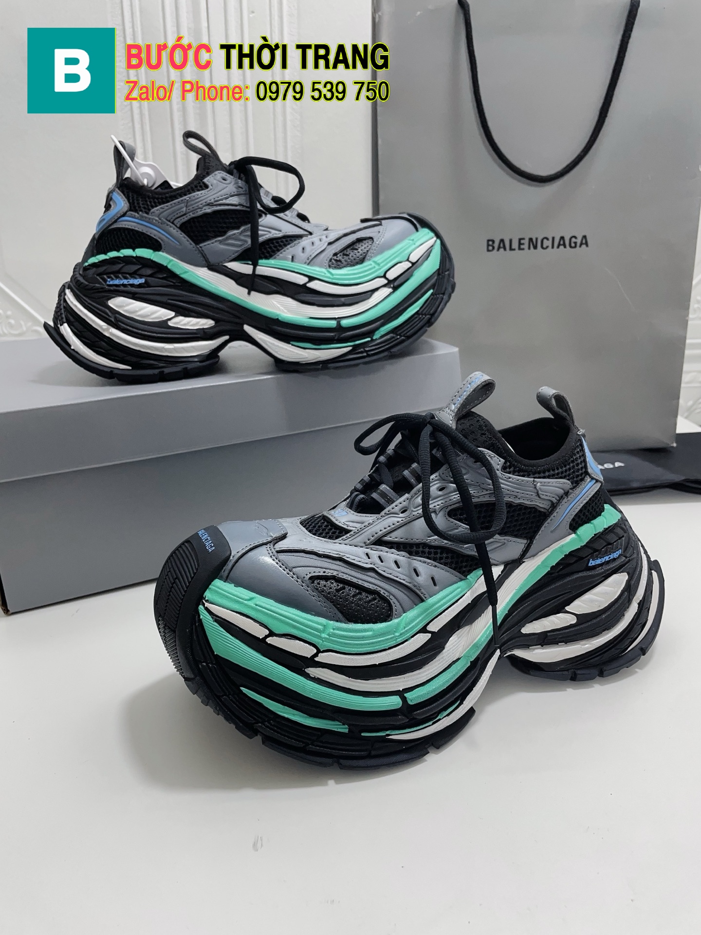 Giày thể thao Balenciaga cao cấp màu trắng ghi mũi cong phong cách năng động