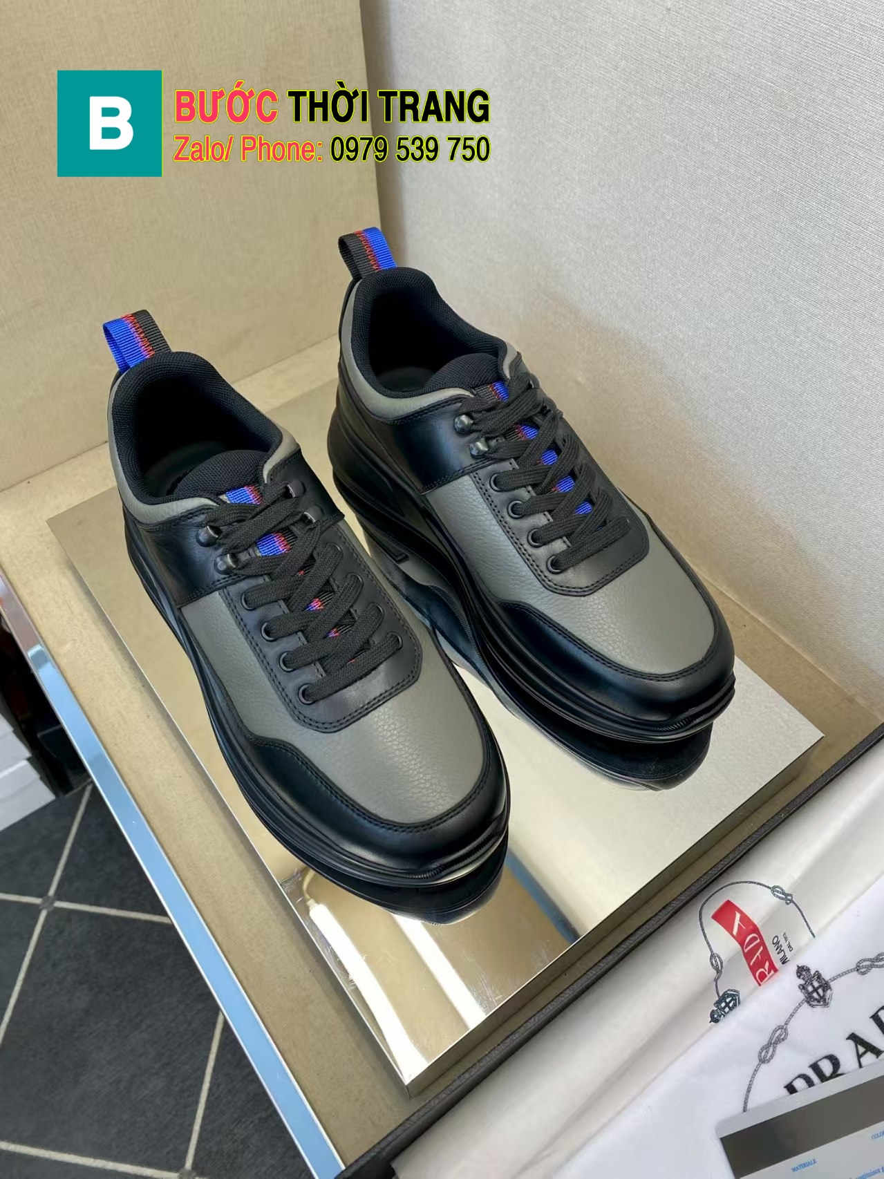 Giày thể thao PRADA cao cấp màu ghi đen chất lượng da nguyên bản phong cách năng động