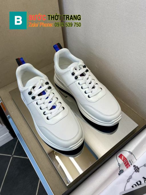 Giày thể thao PRADA cao cấp màu trắng ngà chất lượng da nguyên bản phong cách năng động.