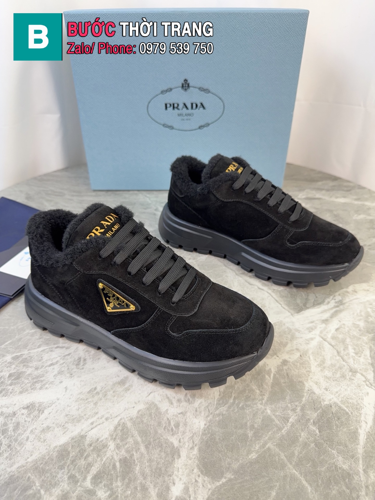 Giày thể thao PRADA nữ màu đen lót lông mềm ấm đế TPU nguyên bản cao cấp