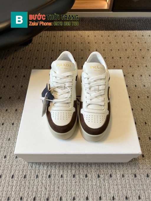Giày thể thao PRADA siêu cấp đế cao màu trắng ngà viền nâu đậm phong cách năng động
