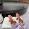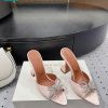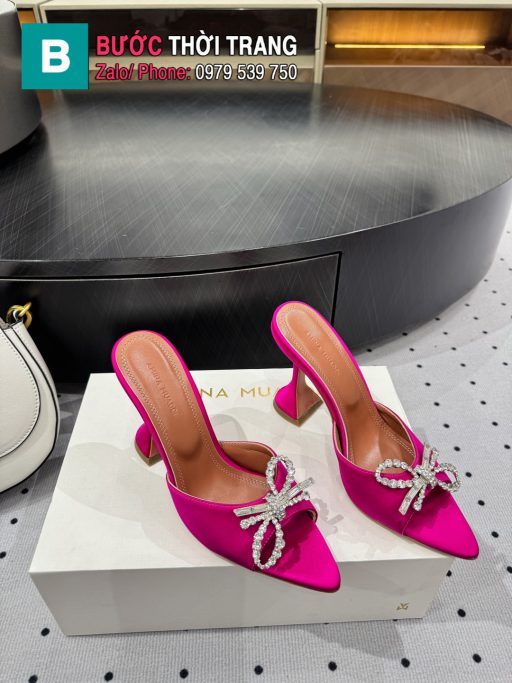 Guốc cao gót Amina Muaddi màu hồng cánh sen chất lụa mũi nhọn cao 9.5cm