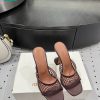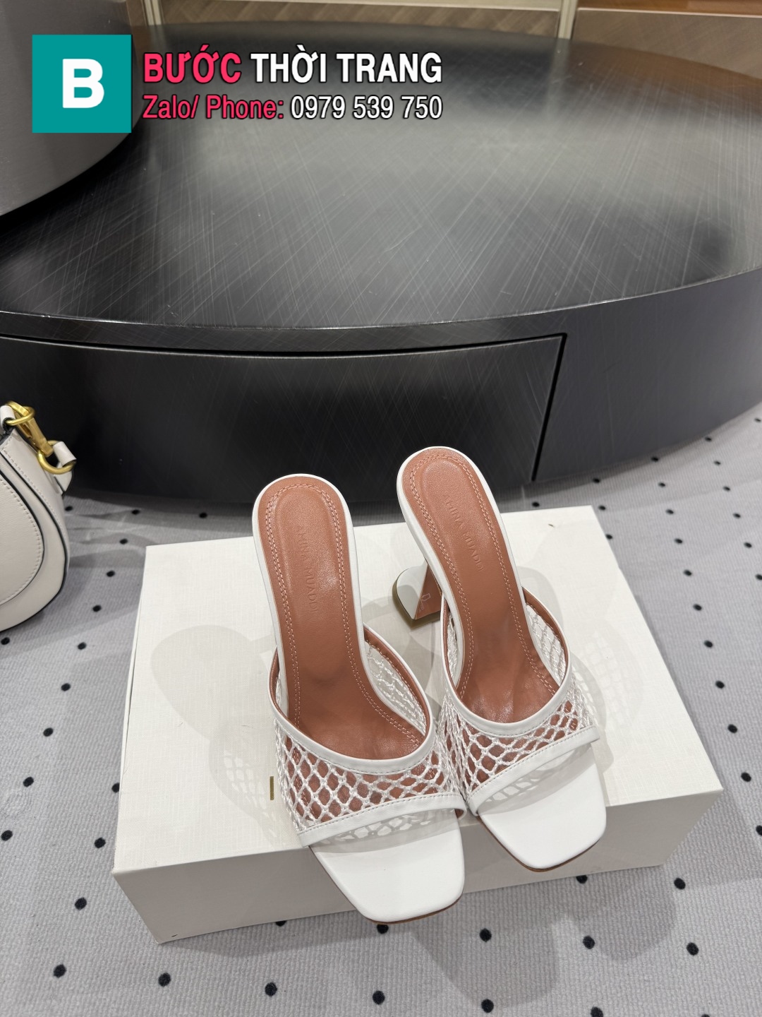 Guốc cao gót Amina Muaddi màu trắng chất da đan lưới mũi vuông cao 9.5cm