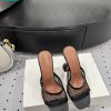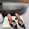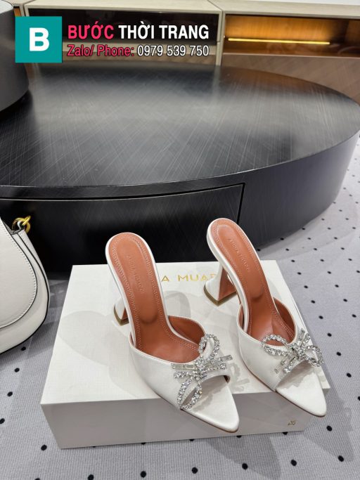 Guốc cao gót Amina Muaddi màu trắng chất lụa mũi nhọn cao 9.5cm