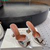 Guốc cao gót Amina Muaddi màu bạc chất da bóng mũi nhọn cao 9.5cm