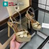 Sandal cao gót Aquazzura màu vàng nổi bật quai lụa đan chéo nữ tính đế cao 13,5cm
