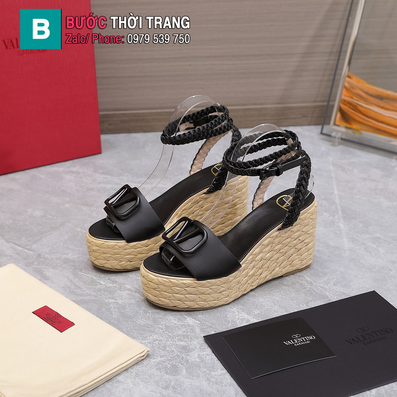 Sandal cao gót đế xuồng LV màu đen đế cao 11 cm