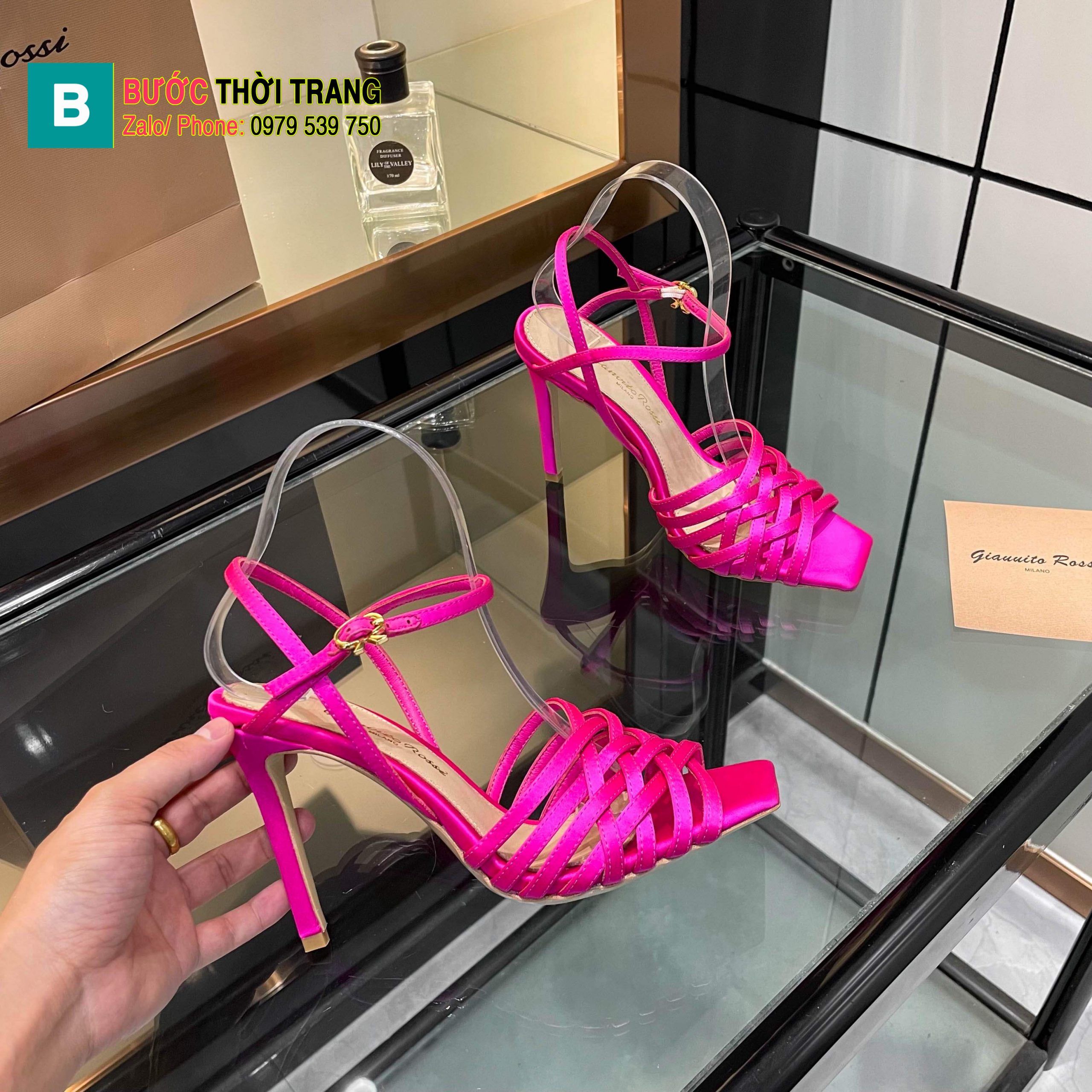 Sandal cao gót Gianvito Rossi cao cấp màu hồng sáng dây mảnh đan xen quyến rũ đế cao 10cm