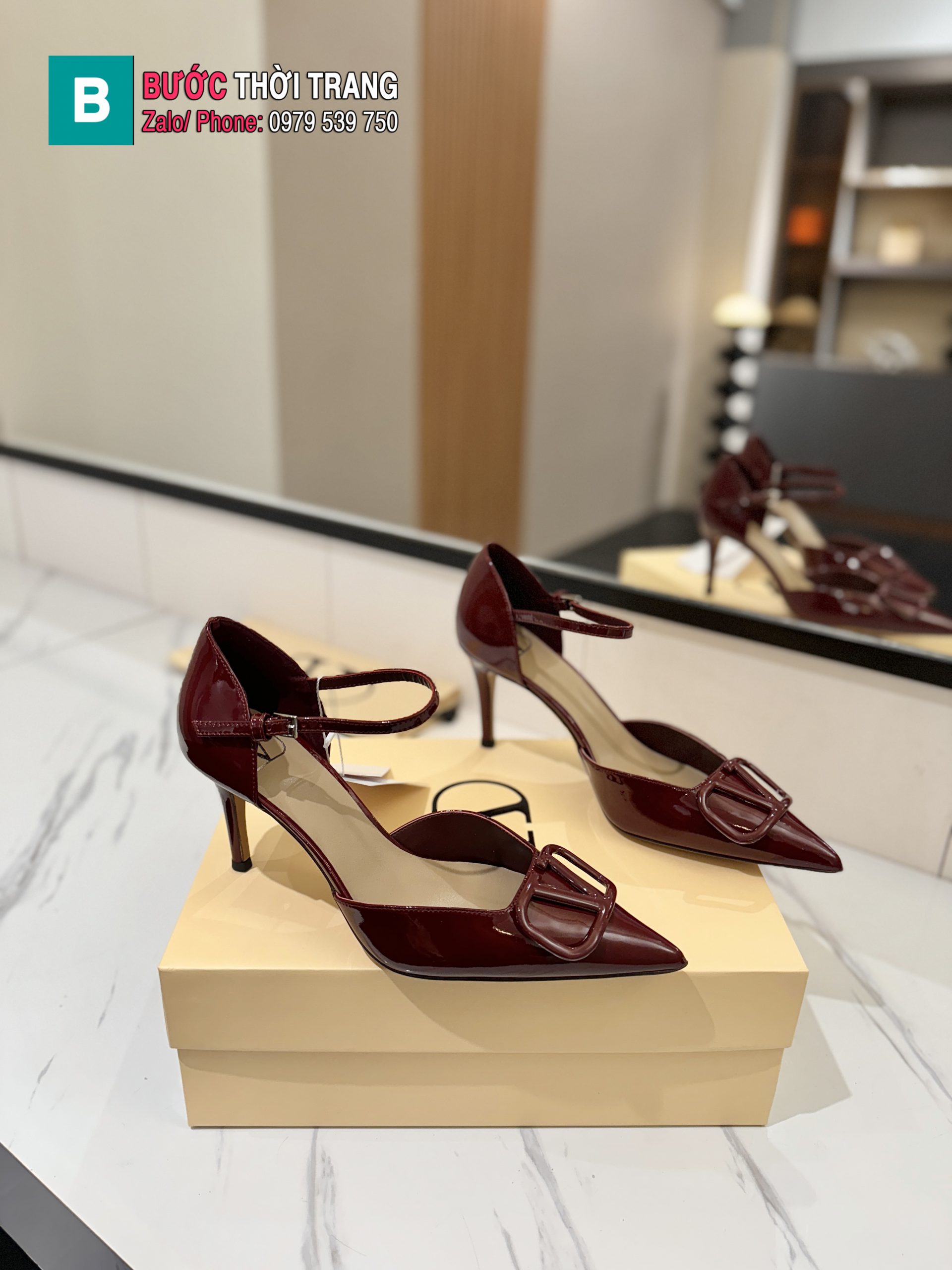 Sandal cao gót nữ VALENTINO đế 8cm màu đỏ đô khóa sơn sang trọng